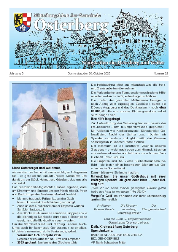 Mitteilungsblatt Osterberg 44. - 45. Kalenderwoche 2025