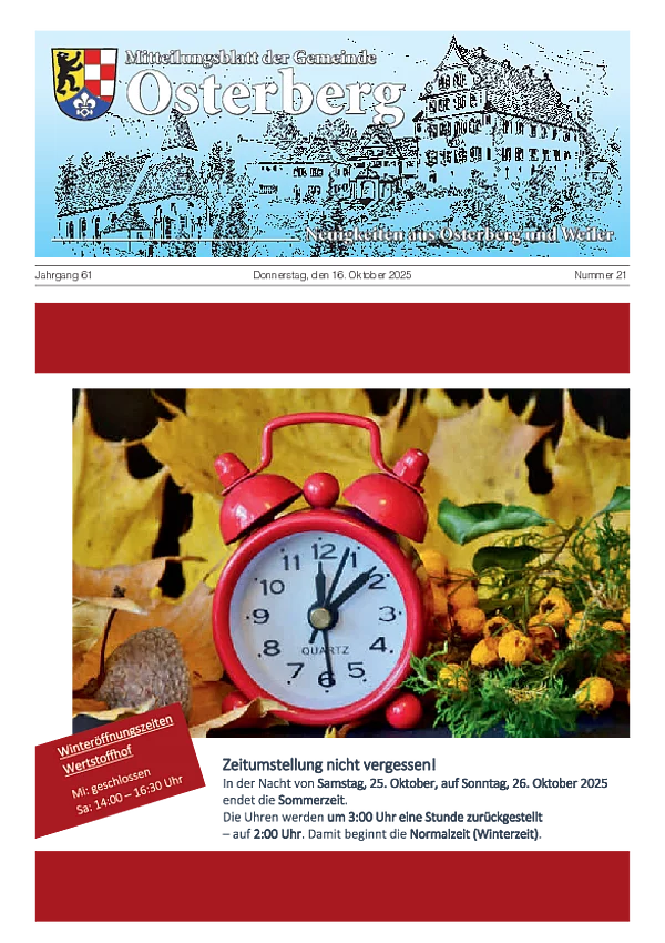 Mitteilungsblatt Osterberg 42. - 43. Kalenderwoche 2025