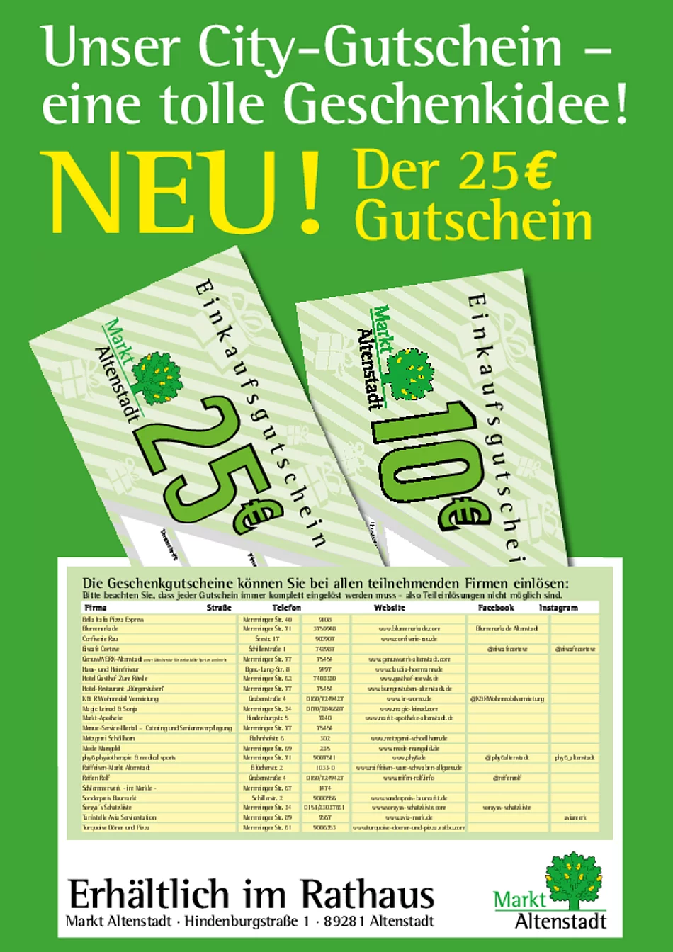 Der Gutschein eignet sich ganz prima als Geschenk für jeden Anlass und ist im Rathaus erhältlich!