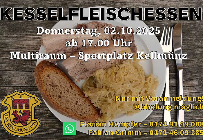 Am 02.10.2025 findet im Multifunktionsraum ein Kesselfleischessen statt. Voranmeldungen sind bis 30.09.2025 möglich.
